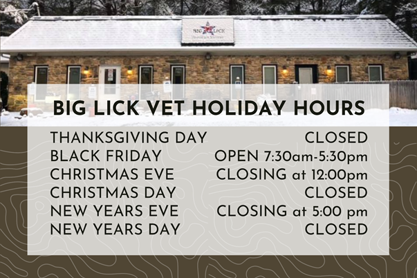 Please make note of our upcoming holiday hours. We highly encourage clients to order their pet’s food and/or medications well in advance of when you’ll need it. Between normal holiday shipping delays and businesses being closed around the holidays, there could be delays in our ability to get the food and medication your pet needs in a short turnaround time. Call us at 540-776-0700 and we’ll be happy to set aside your pet’s necessary food and/or medication.